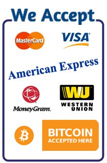 You can pay via Credit card, Debit card, Western Union, Ria, MoneyGram, and Bitcoins.